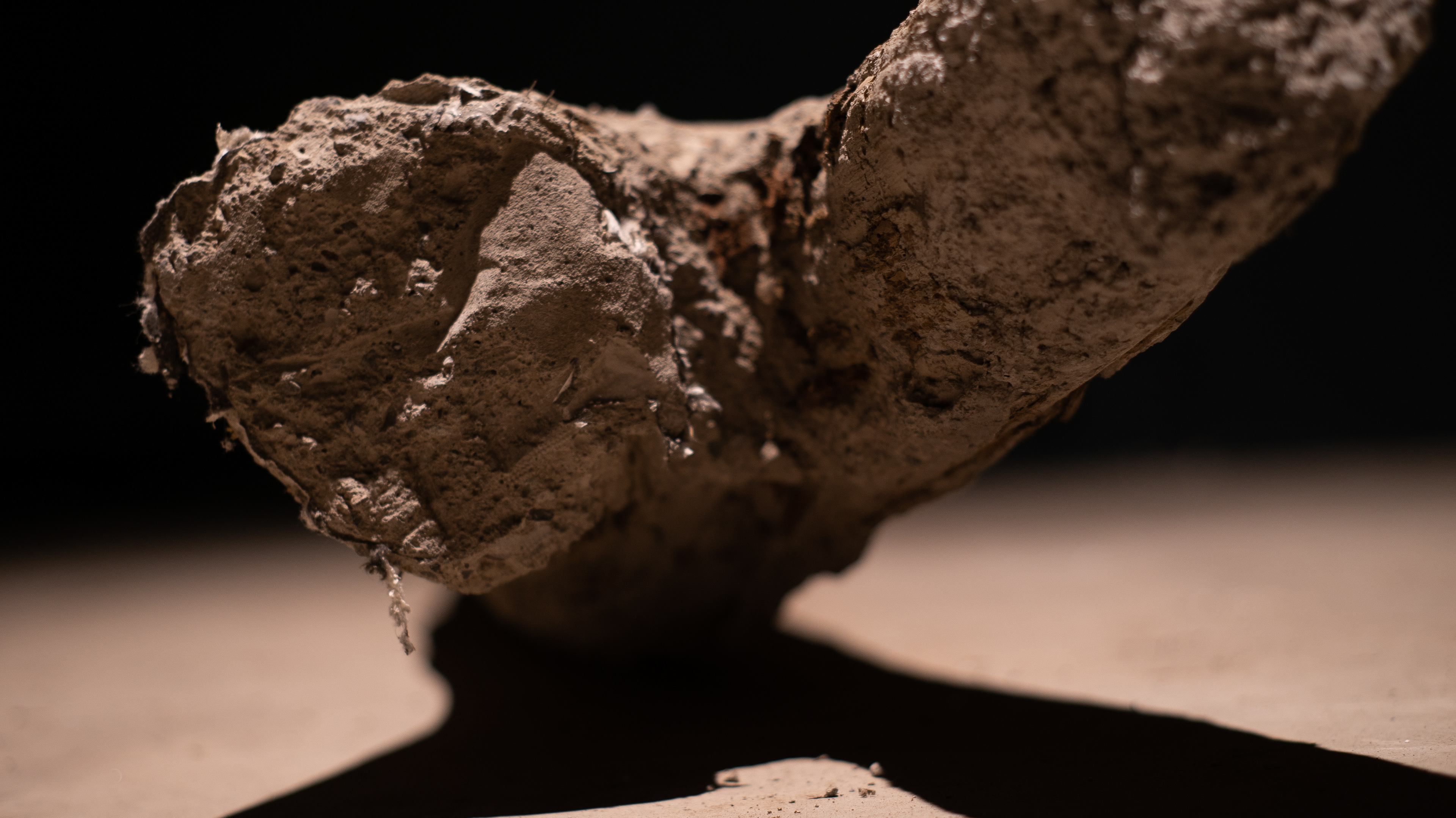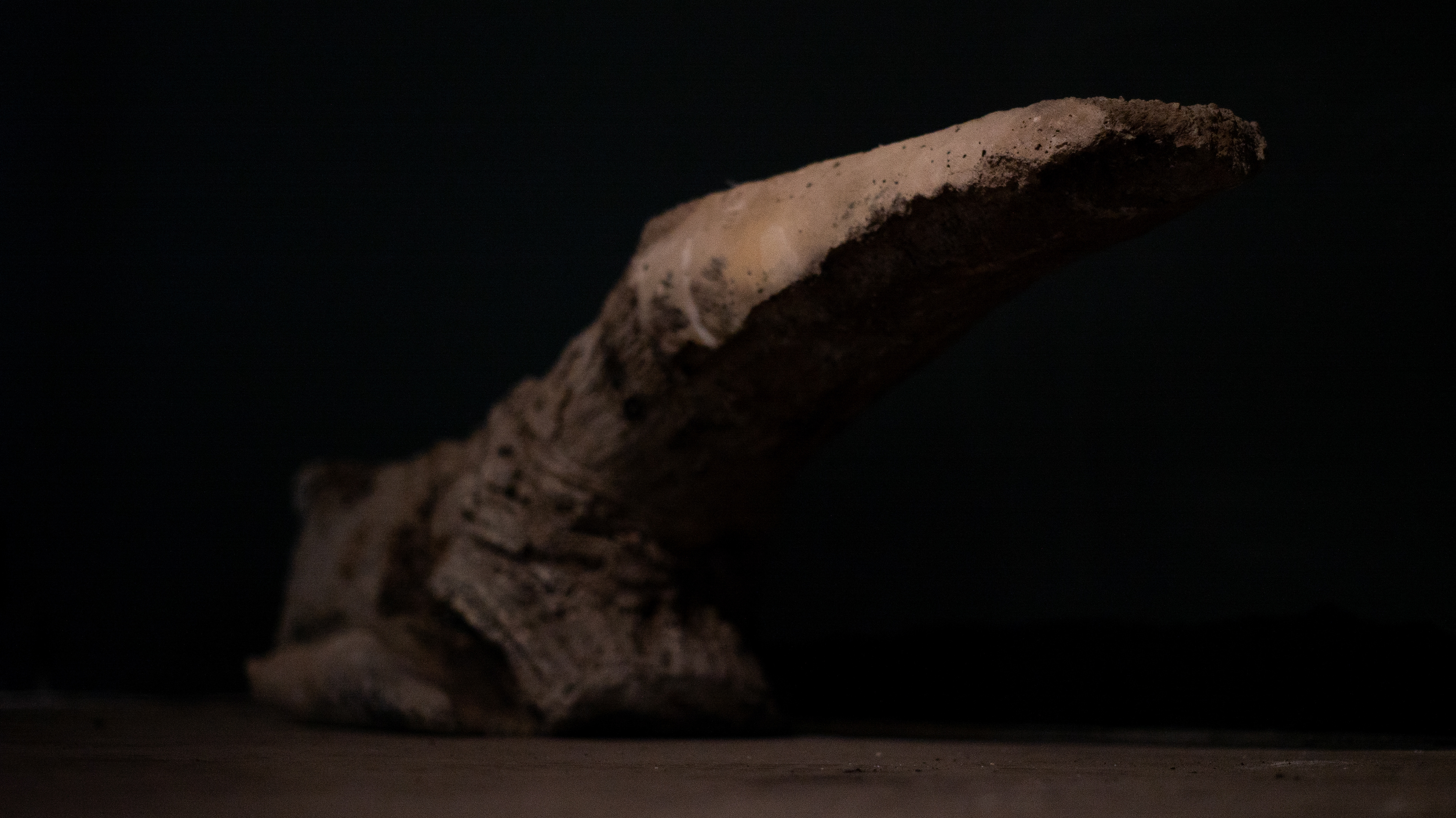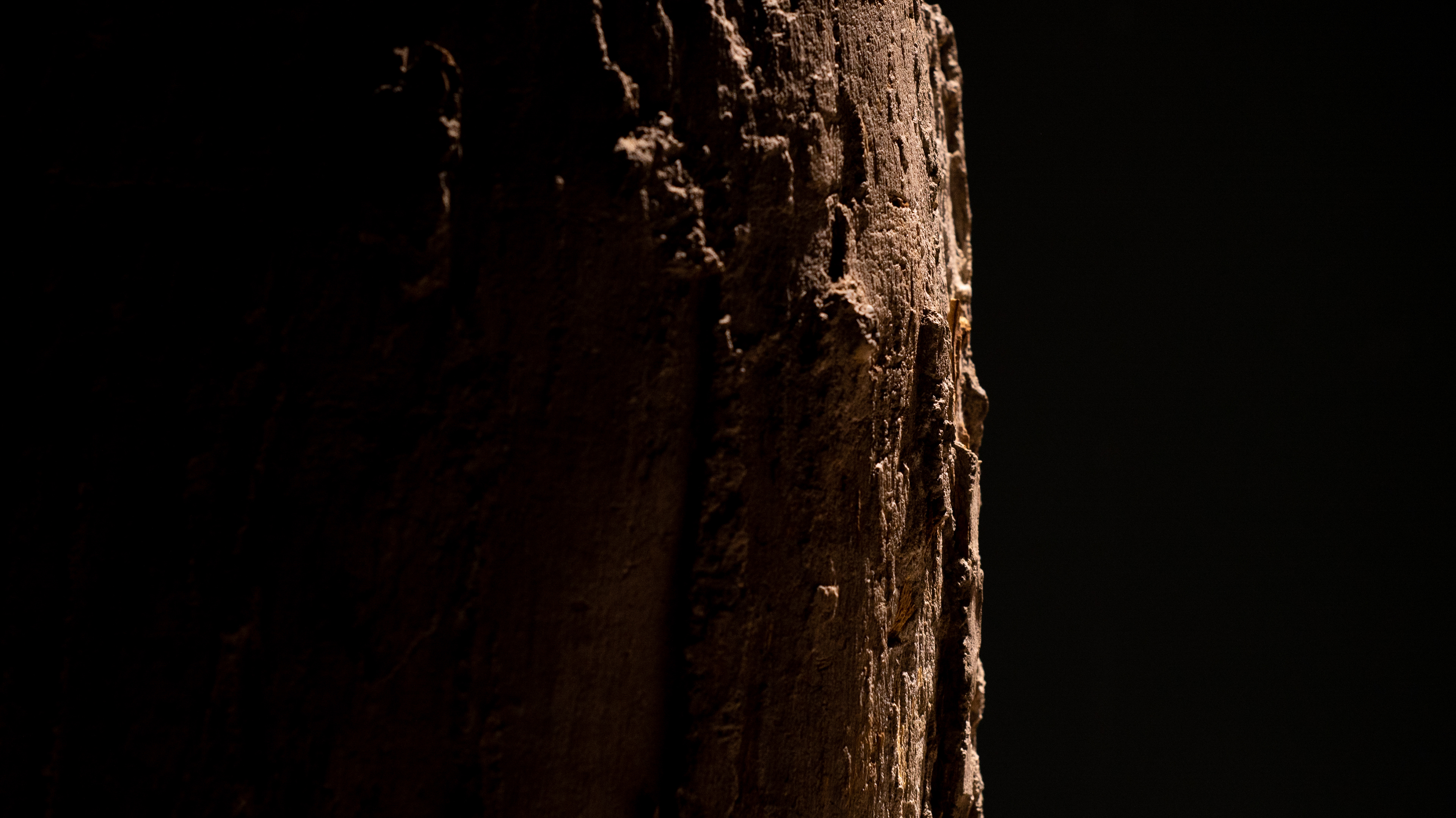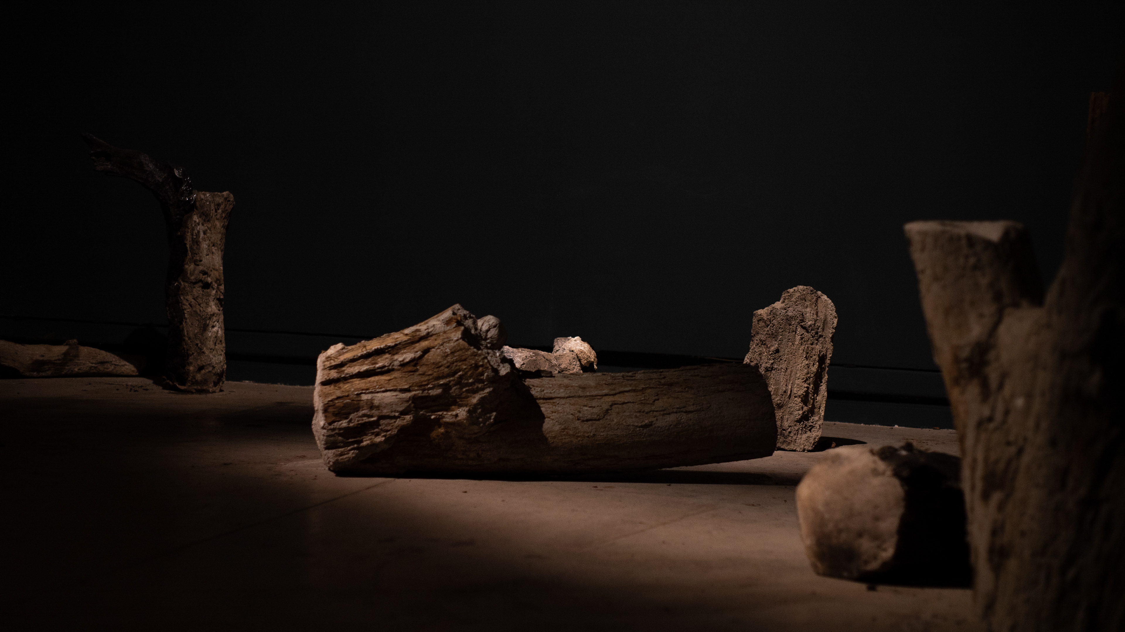 Entre el sueño que buscaba construir un refugio duradero para la humanidad y la pesadilla de un planeta sepultado bajo un material alienante, Futuro Concreto se presenta como una puesta en escena experimental que atiende a la contradicción inherente a los materiales con los que hemos construido nuestro lugar en el mundo. Esta preocupación por nuestra historia material se ve reflejada en una pieza que combina distintas técnicas de moldaje de especies arbóreas conjugada con una instalación sonora que reproduce una versión ralentizada de la Novena Sinfonía de Beethoven. La famosa pieza musical anunciaba nuevos tiempos para la humanidad al ser estrenada en 1824: ese mismo año el británico Joseph Aspdin patenta el cemento Portland, base del desarrollo constructivo de la ciudad moderna.