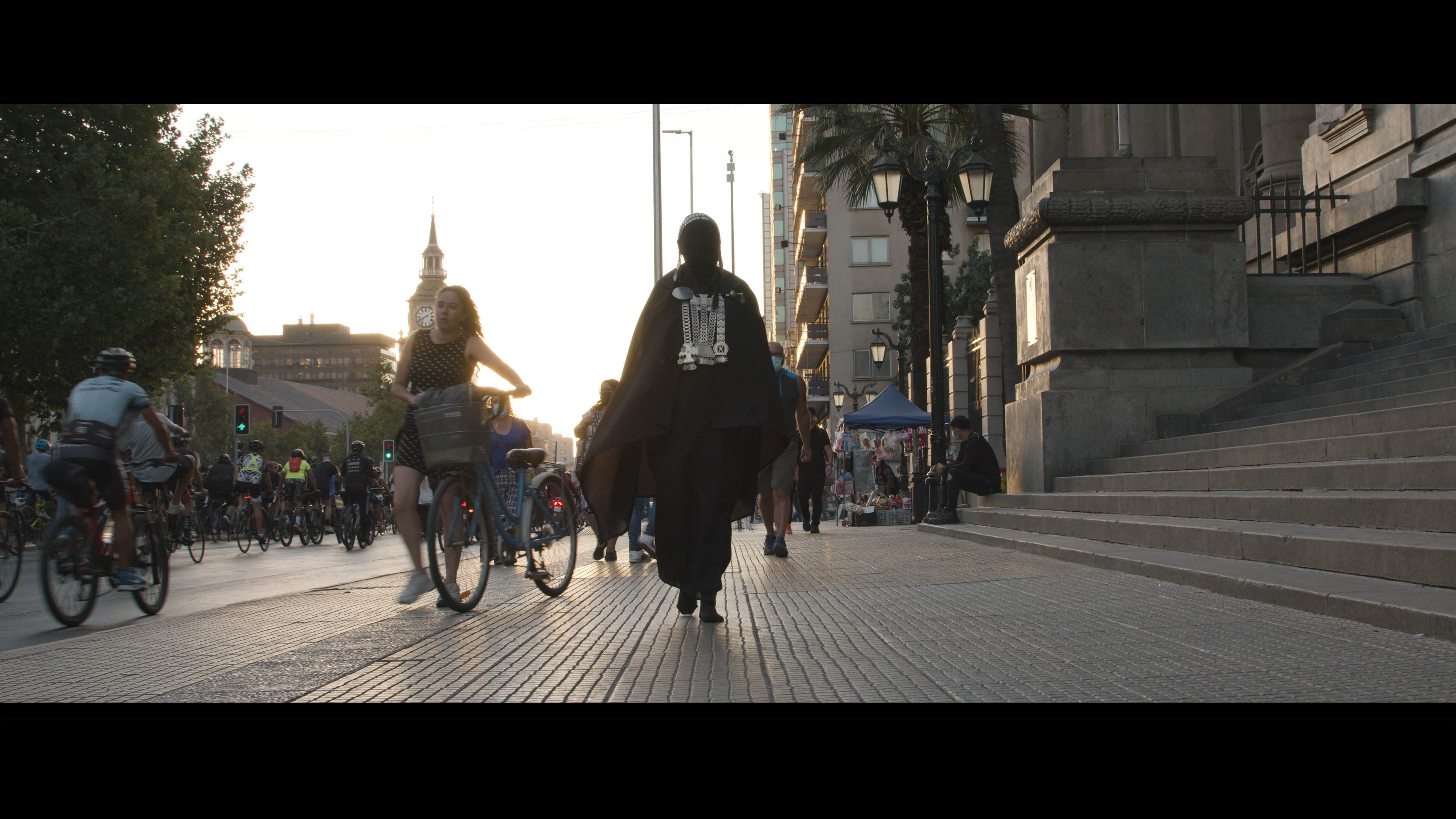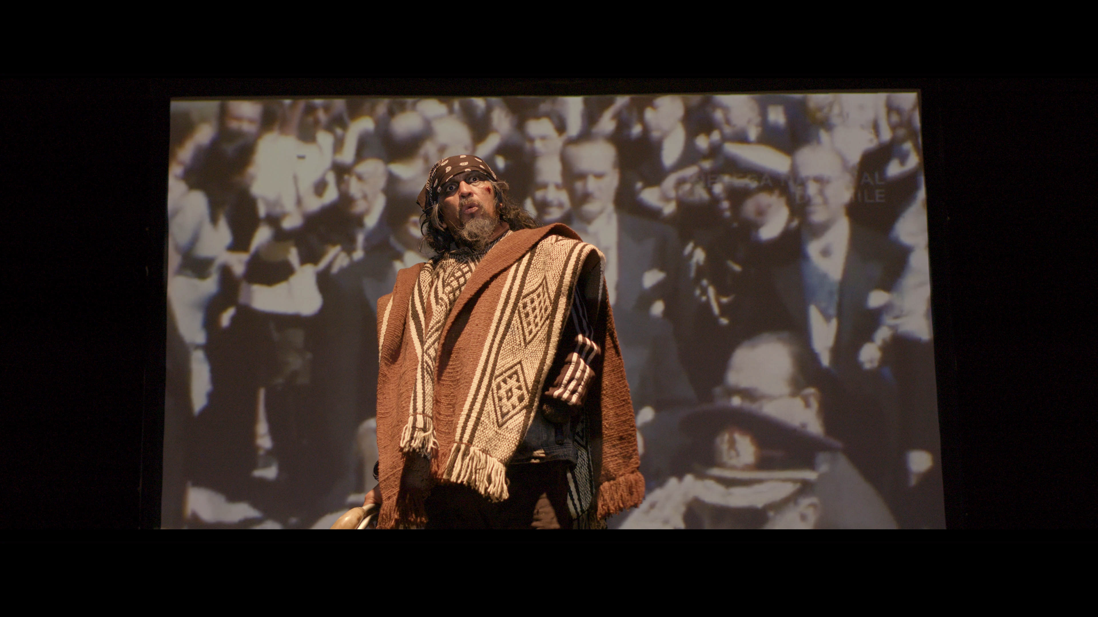 Una máscara ritual mapuche (KOLLONG) despierta en un museo de Santiago de Chile. En su deambular onírico, convoca a una comunidad de PERFORMERS que encarnan escenas de la memoria mapuche en la capital. En esta reconstrucción poética resuenan las voces de mujeres mapuches que, a pesar de las derrotas, siguen luchando. Son ellas quienes le devuelven la esperanza al Kollong, que se pierde en esta sinfonía urbana cargada de melancolía y resistencia.